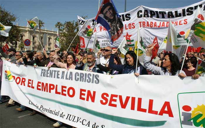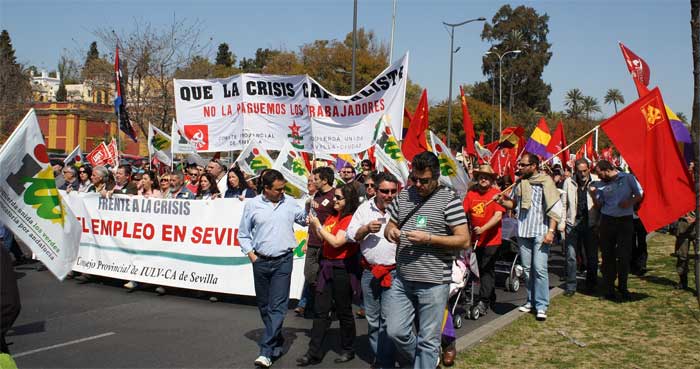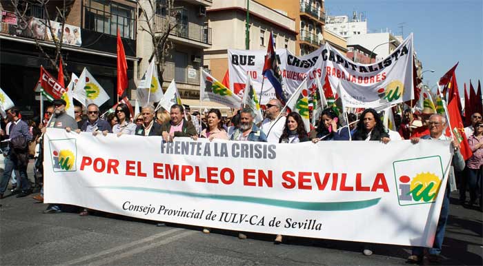 Izquierda Unida ha participado activamente en la manifestación llevada a cabo este domingo 11 de marzo contra la reforma laboral y los recortes sociales. En la marcha de Sevilla, que ha sido secundada por más de 70.000 personas, IU-LV-CA se ha hecho visible a través de un potente cortejo encabezado por su candidato a las próximas elecciones autonómicas por la provincia, Juan Manuel Sánchez Gordillo, y en el que no han faltado la mayoría de sus compañeros de lista y principales dirigentes de la federación de izquierdas.